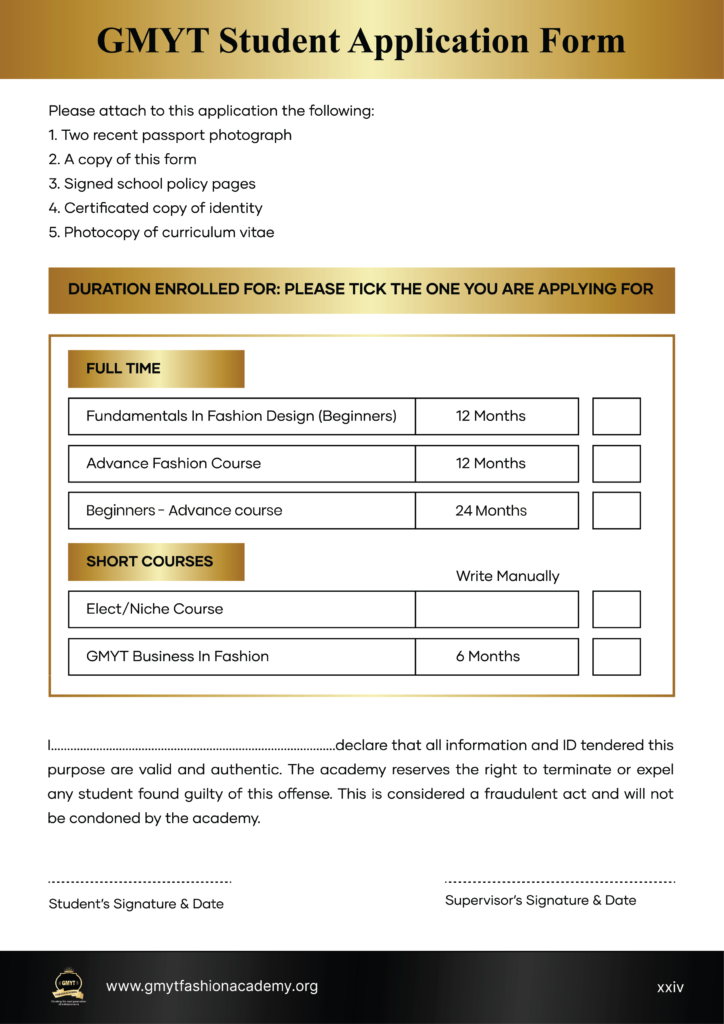 Thank you for your interest in GMYT Fashion Academy! Get an insight into our admissions process and the various programs we offer. We look forward to helping you embark on your fashion journey and achieve your career aspirations in the industry!